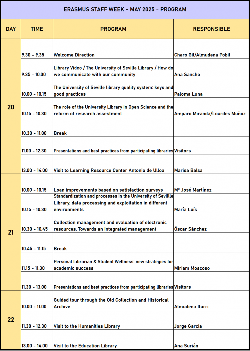 The University of Seville cordially invites you to participate in the Erasmus+ Staff Mobility Program, which will take place in May 2025 (19th - 23rd).